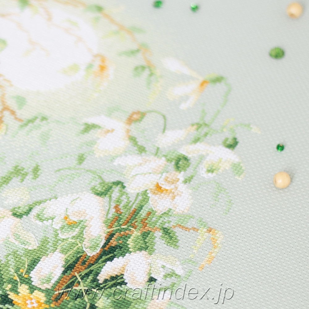 ●キットに含まれるもの:14カウントアイーダ(色:薄グリーン)、25番刺しゅう糸、クロス針、図案、日本語説明